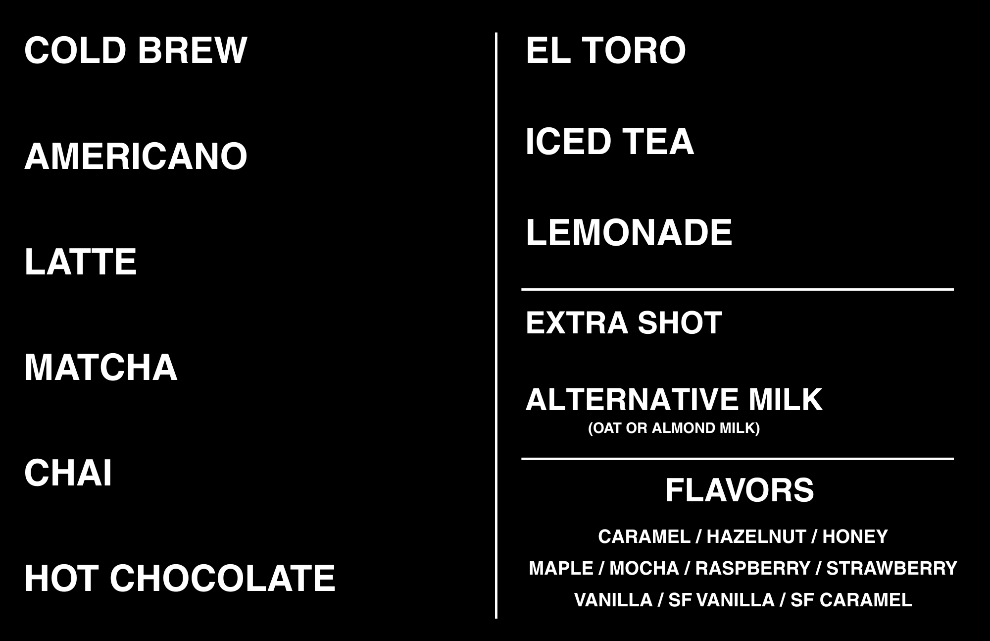 Mobile Espresso Bar Menu